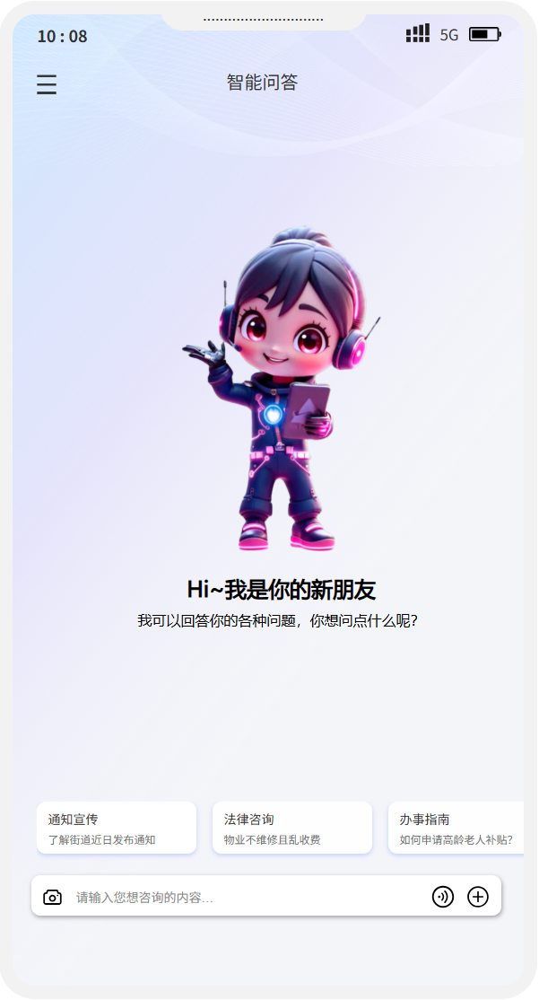 · 数字人亲切交互:支持语音实时对话、文字精准回复,体验更人性化;